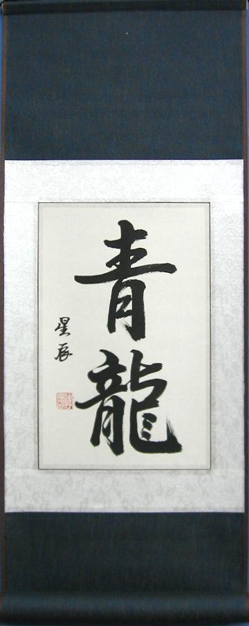 Does someone you know love dragons? If you buy the Chinese Symbols for Green Dragon Scroll Painting for them you can be sure they will never forget who gave them this unique gift.Our Chinese Symbols for Green Dragon Scroll Painting features two symbols meaning "green dragon" and measures 11x29 inches in size. The Chinese Symbols for Green Dragon Scroll Painting was is a 100% hand-painted dragon artwork by Beijing, China artist Xing Chen. This scroll art painting ships to your home ready to hang, there is absolutely no framing required.
